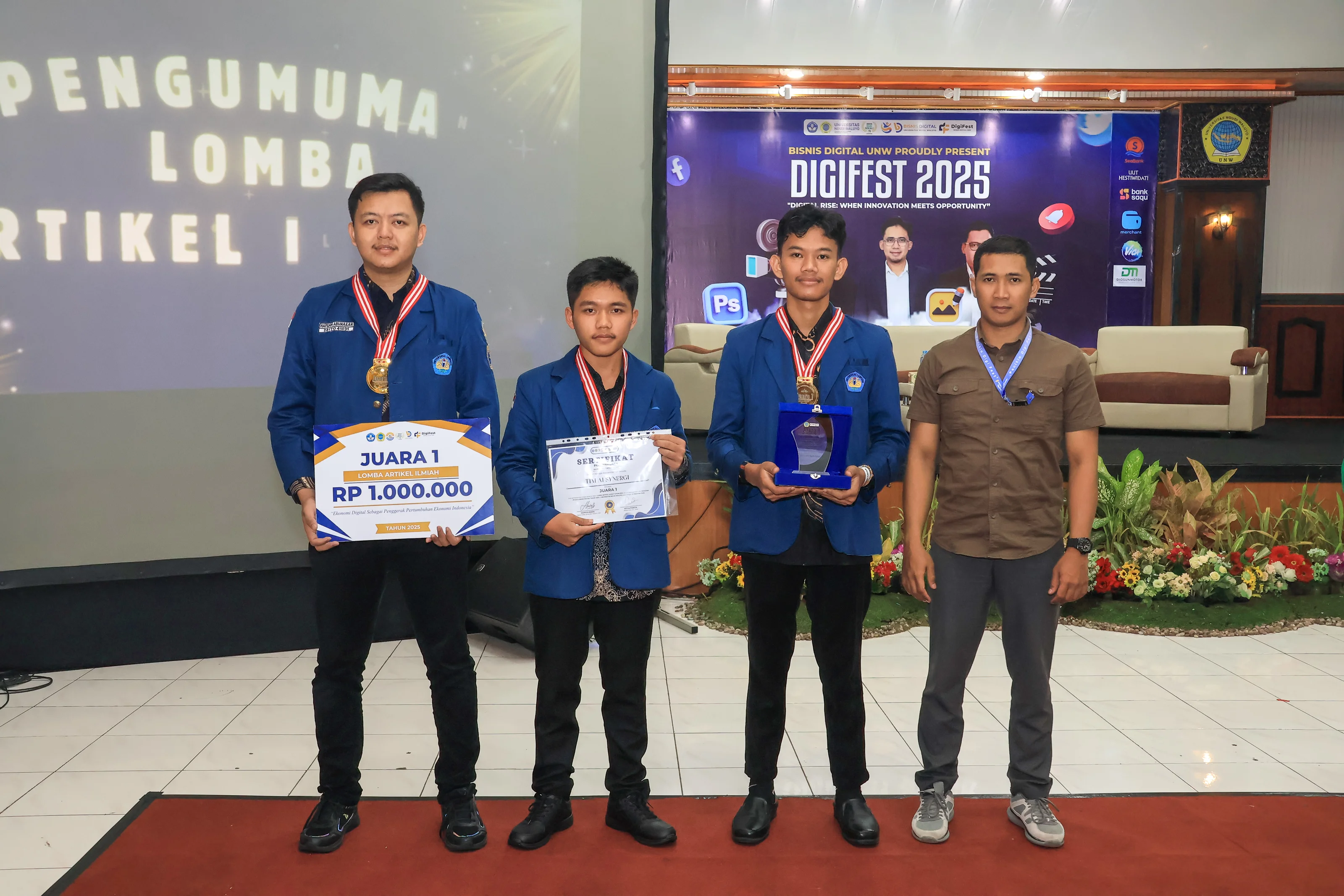 Digifest 2025 dihadiri oleh jajaran pimpinan Fakultas Ekonomi, Hukum, dan Humaniora (FEHH) UNW, di antaranya Dekan FEHH Budiarti, S.Pd., M.Pd., Wakil Dekan Jaya Ramadhaey Bangsa, S.E., M.M., serta Kaprodi Bisnis Digital UNW Setya Indah Isnawati, S.I.Kom., M.M. Kegiatan ini dirancang secara sistematis dengan tiga rangkaian utama, yakni lomba karya tulis ilmiah nasional, seminar dan talkshow inspiratif, serta workshop interaktif yang relevan dengan kebutuhan industri digital masa kini. Suasana semakin semarak dengan digelarnya expo di pelataran lantai dasar Gedung E yang menampilkan beragam stan makanan dan pernak-pernik kreatif hasil karya pelaku usaha muda.