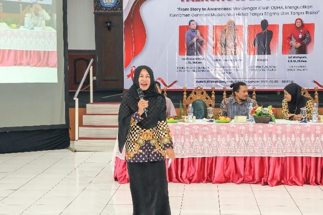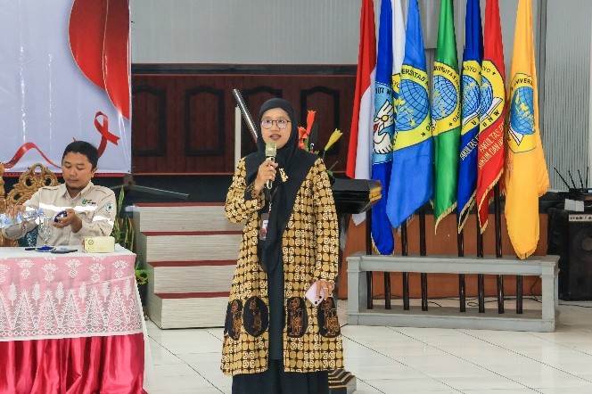 Ketua Program Studi Kesehatan Masyarakat, Sri Lestari, S.KM., M.Kes., dalam sambutannya menyampaikan bahwa kegiatan ini dilaksanakan secara hybrid dan diikuti oleh seluruh mahasiswa Kesmas dari lintas semester sebagai bentuk kontribusi akademisi dalam memperingati Hari AIDS Sedunia. Ia berharap melalui edukasi ilmiah dan pemahaman yang lebih mendalam, mahasiswa dapat meningkatkan empati serta mendukung terciptanya lingkungan yang inklusif bagi penderita HIV/AIDS. Dekan Fakultas Kesehatan, Eko Susilo, S.Kep., Ns., M.Kep., turut menegaskan bahwa mahasiswa sebagai calon tenaga kesehatan harus memiliki kesadaran tinggi dalam menjalankan peran promotif dan preventif serta memberikan kontribusi terbaik bagi masyarakat. Untuk itu diharapkan mahasiswa dapat mengambil banyak pelajaran dan wawasan melalui kegiatan inspiratif ini.