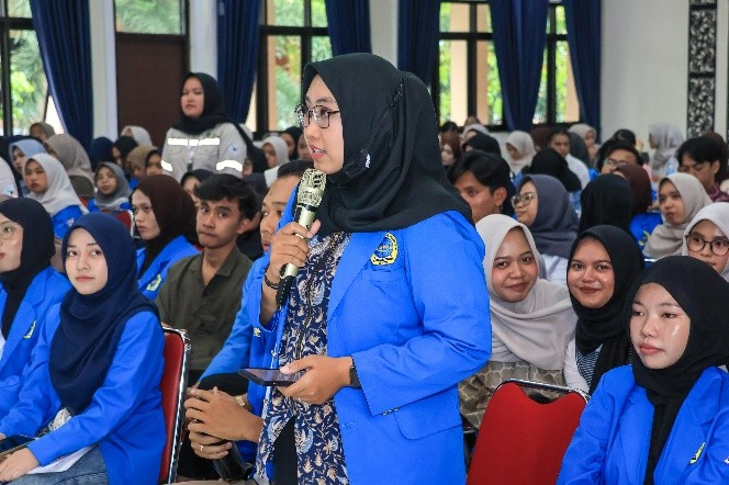 Sementara itu, Upik Krisnawati, S.KM., menjelaskan peran Kelompok Dukungan Sebaya Arjuna dalam mendampingi ODHA (Orang dalam HIV/AIDS) dan ODHIV (Orang dengan HIV), serta mengajak mahasiswa menjadi pelopor generasi “No Stigma HIV” dengan berani melakukan tes kesehatan untuk mengetahui status HIV secara pasti. Kisah inspiratif juga disampaikan oleh salahsatu perwakilan KDS Arjuna yang secara terbuka berbagi pengalaman hidup sebagai penyintas HIV, memberikan perspektif nyata mengenai pentingnya dukungan moral dan sosial bagi ODHA agar dapat hidup sehat dan produktif.