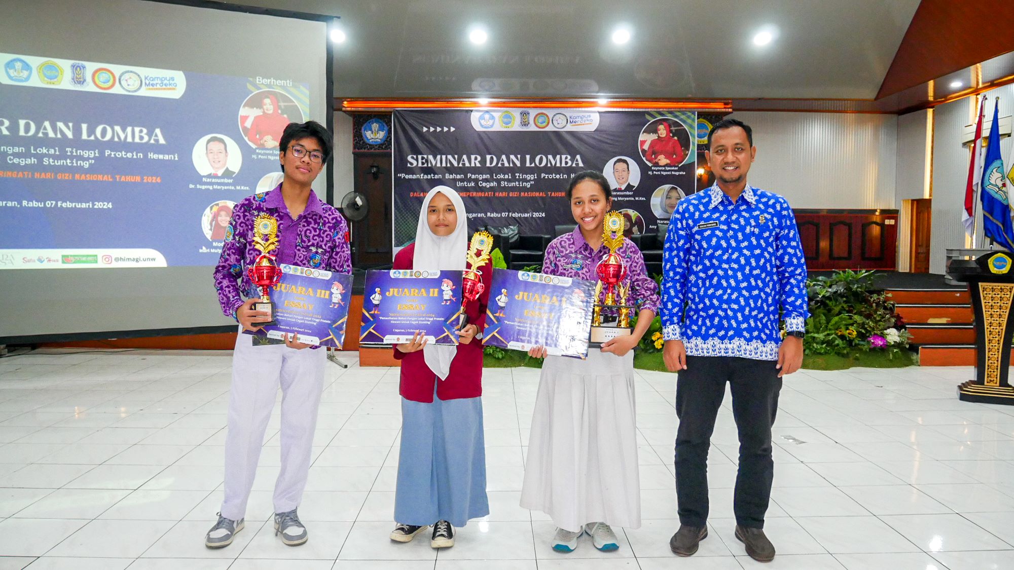 DPC Persatuan Ahli Gizi Indonesia (PERSAGI) Kabupaten Semarang dan Program Studi S1 Gizi Fakultas Kesehatan Universitas Ngudi Waluyo telah sukses menggelar Seminar Gizi bertema "Pemanfaatan Bahan Pangan Lokal Tinggi Protein untuk Cegah Stunting" sebagai bagian dari peringatan Hari Gizi Nasional Ke-64, yang jatuh pada tanggal 25 Januari 2024 dengan tema MP ASI Kaya Protein Hewani Cegah Stunting. Kegiatan ini juga melibatkan sejumlah lomba seperti Lomba kreasi menu MP-ASI, Poster, Cooking Video, dan Essay, yang menjadi wadah bagi masyarakat untuk mengekspresikan pemahaman dan kreativitas mereka terkait isu gizi dan stunting. Sebagai narasumber, hadir Dr. Sugeng Maryanto, M.Kes., Ibu Amy Prahesti, S.KM., M.Gizi, dan Ny. Peni Ngesti Nugraha.