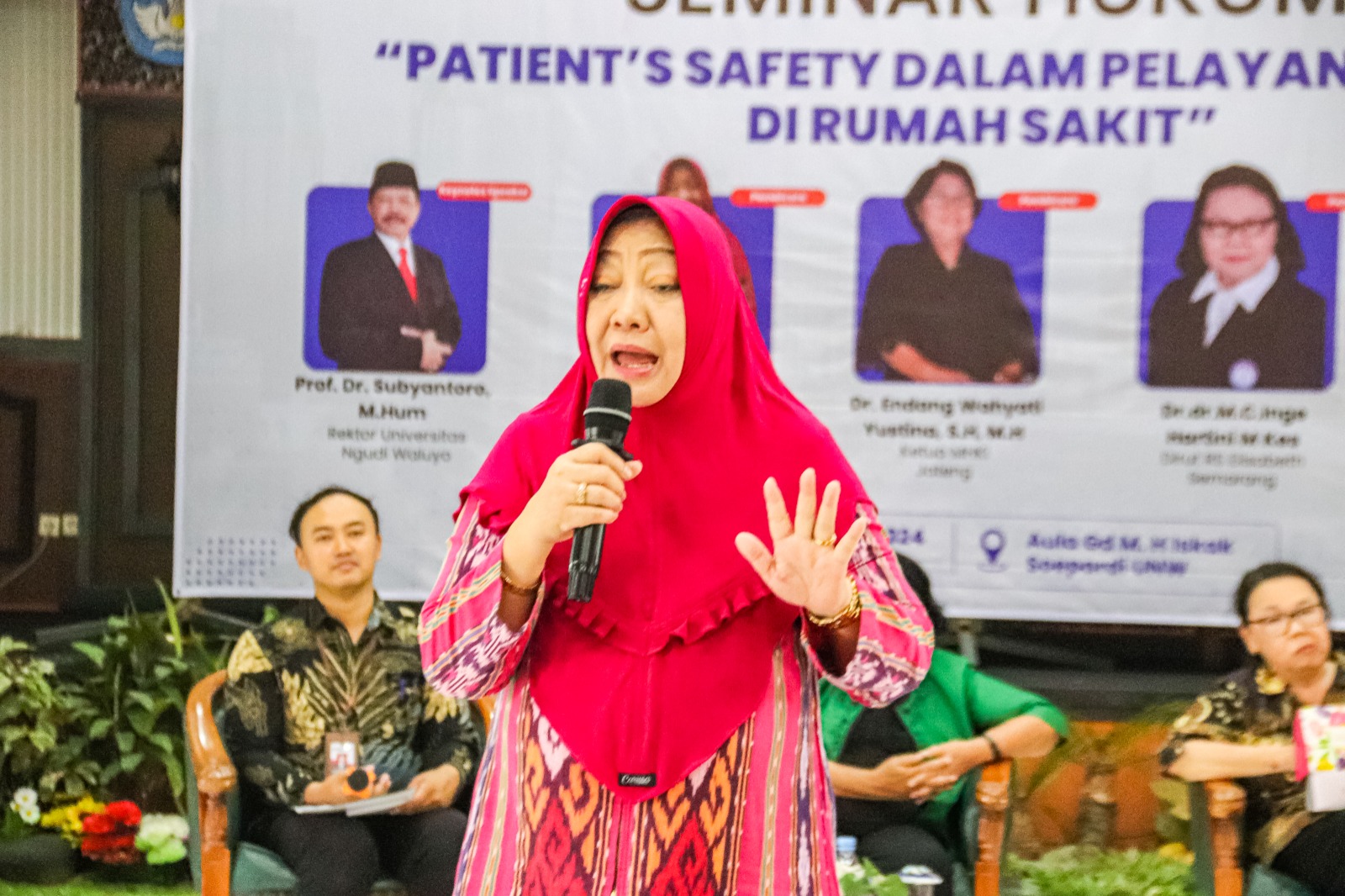 Prof. Dr. Subyantoro, M.Hum, Rektor Universitas Ngudi Waluyo, yang hadir sebagai keynote speaker, menekankan pentingnya penerapan keselamatan pasien sebagai bagian dari layanan kesehatan berkualitas. “Keselamatan pasien harus menjadi prioritas utama di setiap rumah sakit. Melalui seminar ini, kami berharap peserta dapat memahami pentingnya aspek hukum dalam memastikan perlindungan bagi pasien di rumah sakit,” ujar Prof. Subyantoro.