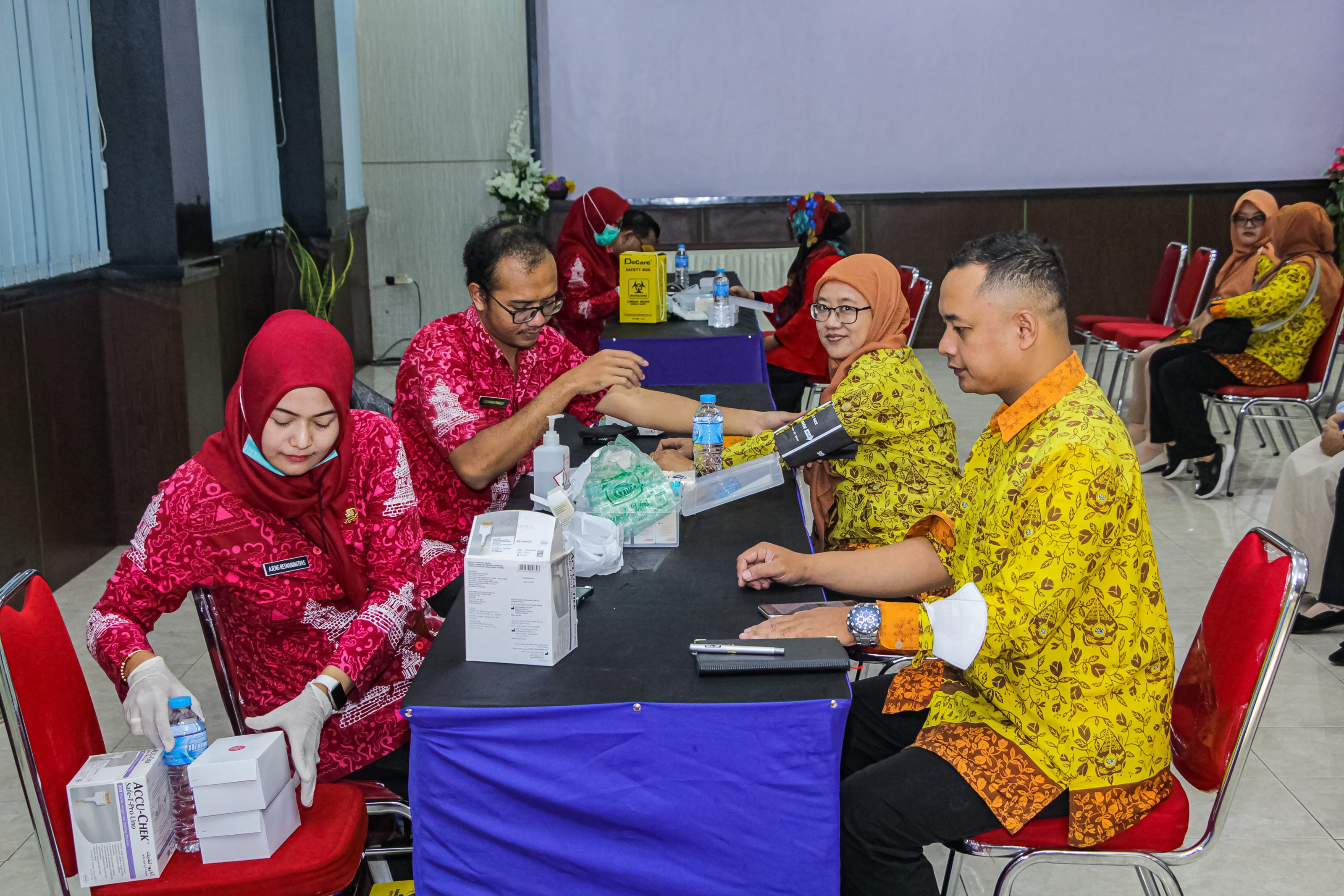 Pemeriksaan ini mencakup skrining penyakit tidak menular (PTM) seperti penyakit diabetes dan hipertensi melalui pengecekan tekanan darah dan cek gula darah. Kegiatan ini bertujuan untuk mendeteksi dini riwayat penyakit yang tidak diketahui sebelumnya agar memastikan kesehatan dan kebugaran setiap pegawai dan karyawan di Universitas Ngudi Waluyo. Harapannya dengan terlaksananya kegiatan Skrining Deteksi Dini. Faktor Resiko Penyakit Tidak Menular ini para pegawai dan karyawan semakin semangat dalam menjaga kesehatan dan kebugaran dengan melaksanakan pola hidup sehat. Semangat hidup sehat dengan menerapkan program CERDIK yaitu: C=Cek kesehatan secara berkala, E=Enyahkan asap rokok, R=Rajin aktifitas fisik, D=Diet sehat dengan kalori seimbang, I=Istirahat cukup, dan K= Kelola stress